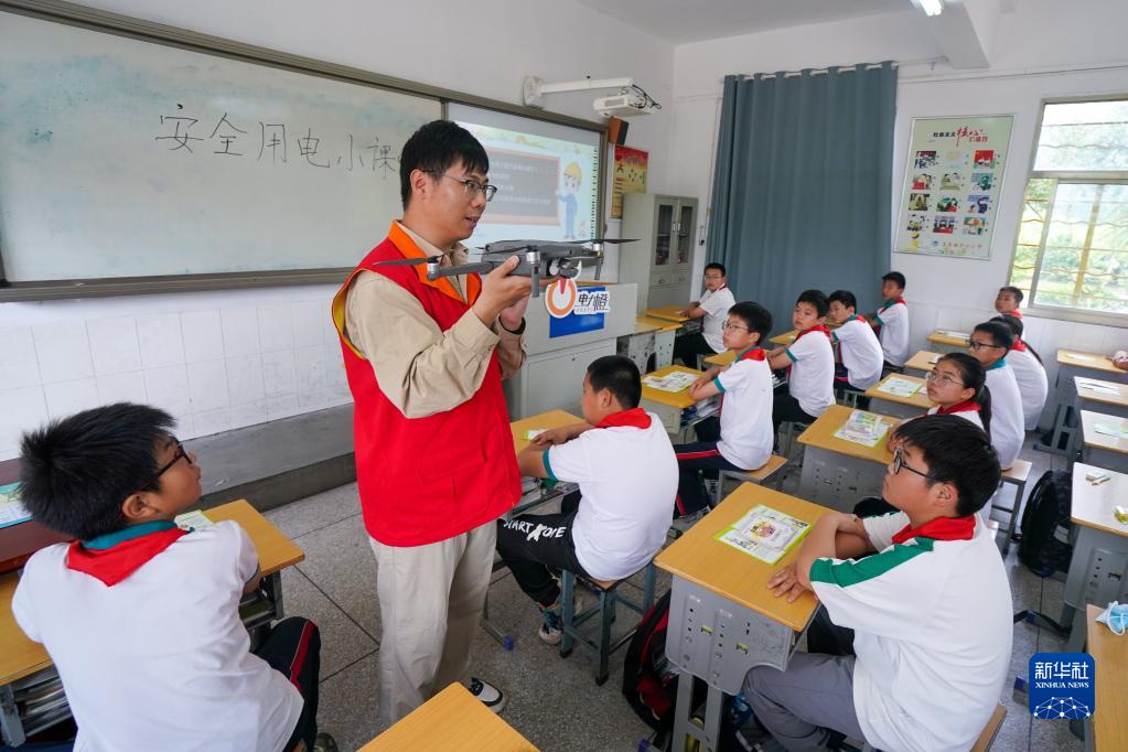 6月16日,青年志愿者展示用于巡檢供電線(xiàn)路的無(wú)人機。
