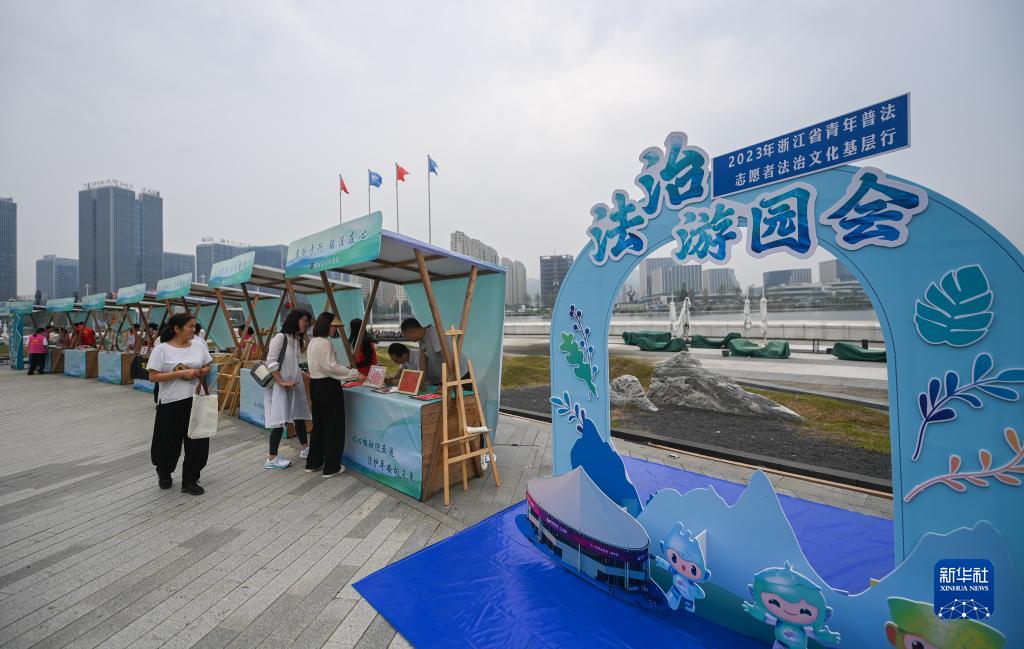 當日,在浙江省德清縣地理信息小鎮德清國際會(huì )議中心,以“心心相融迎亞運 法護平安向未來(lái)”為主題的浙江省“2023年青年普法志愿者法治文化基層行”正式啟動(dòng)。啟動(dòng)儀式現場(chǎng),德清縣各鄉鎮、街道多部門(mén)的青年普法志愿者進(jìn)行宣誓,現場(chǎng)還舉行了法治游園會(huì )等系列普法活動(dòng)。