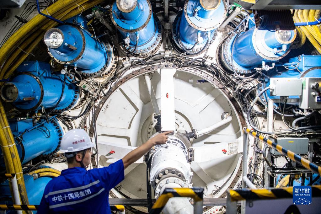 6月16日,工作人員在檢查“長(cháng)江號”盾構機運行情況。