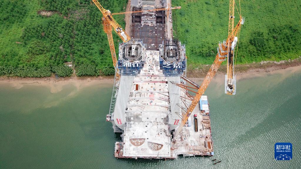 這是6月16日拍攝的香爐洲大橋項目建設現場(chǎng)(無(wú)人機照片)。