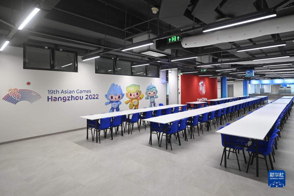 這是6月16日拍攝的杭州亞運村運動(dòng)員餐廳內景。