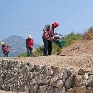 6月15日,工人在山海關(guān)長(cháng)城腰鋪9號敵臺修繕工地施工。