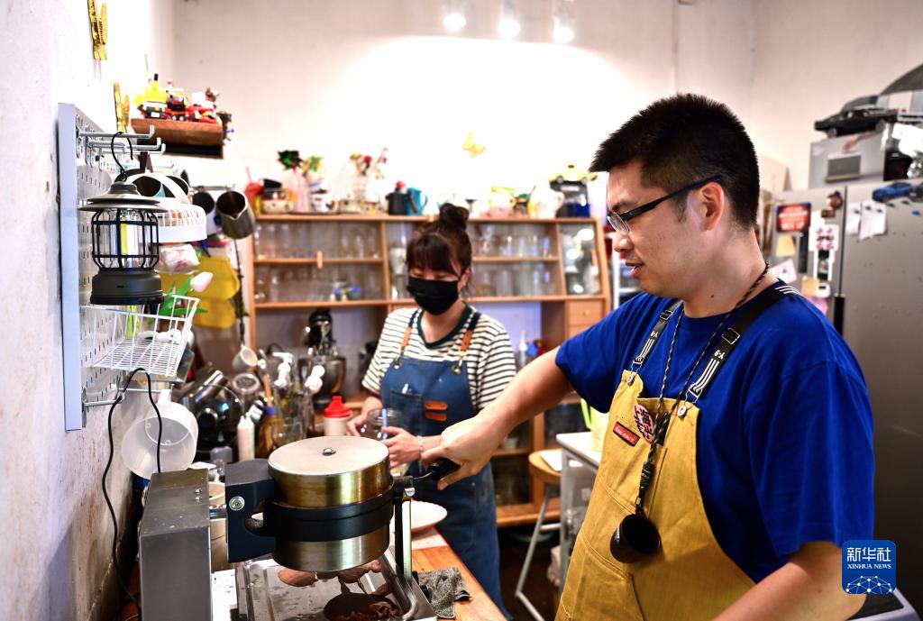 如今,咖啡小店的生意已走上正軌?!斑@一杯咖啡,讓我們一家三口都扎根在了祖國大陸?!痹缧耪f(shuō)。