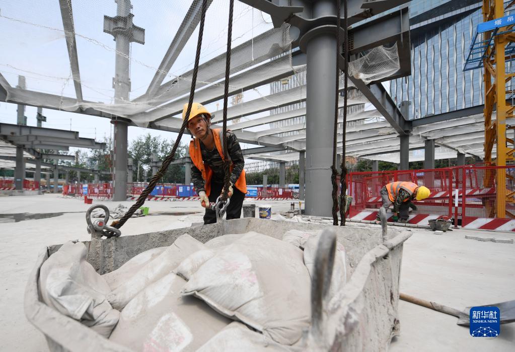 6月17日,在中建三局石景山商業(yè)金融服務(wù)業(yè)用地項目,工人在施工。為了應對高溫天氣,施工單位調整施工方案減少高溫工作時(shí)間,確保高溫下戶(hù)外勞動(dòng)者的安全。