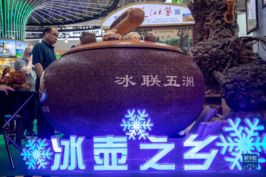 6月16日在伊春展區拍攝的由山核桃切片制成的冰壺。