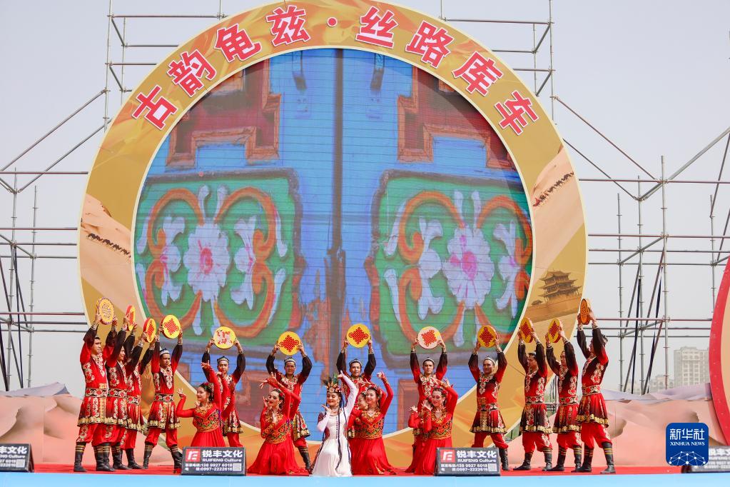 當日,2023年阿克蘇地區第十九屆多浪龜茲文化旅游節暨庫車(chē)市第二屆龜茲文化藝術(shù)節開(kāi)幕式在新疆阿克蘇地區庫車(chē)市東湖廣場(chǎng)舉行。