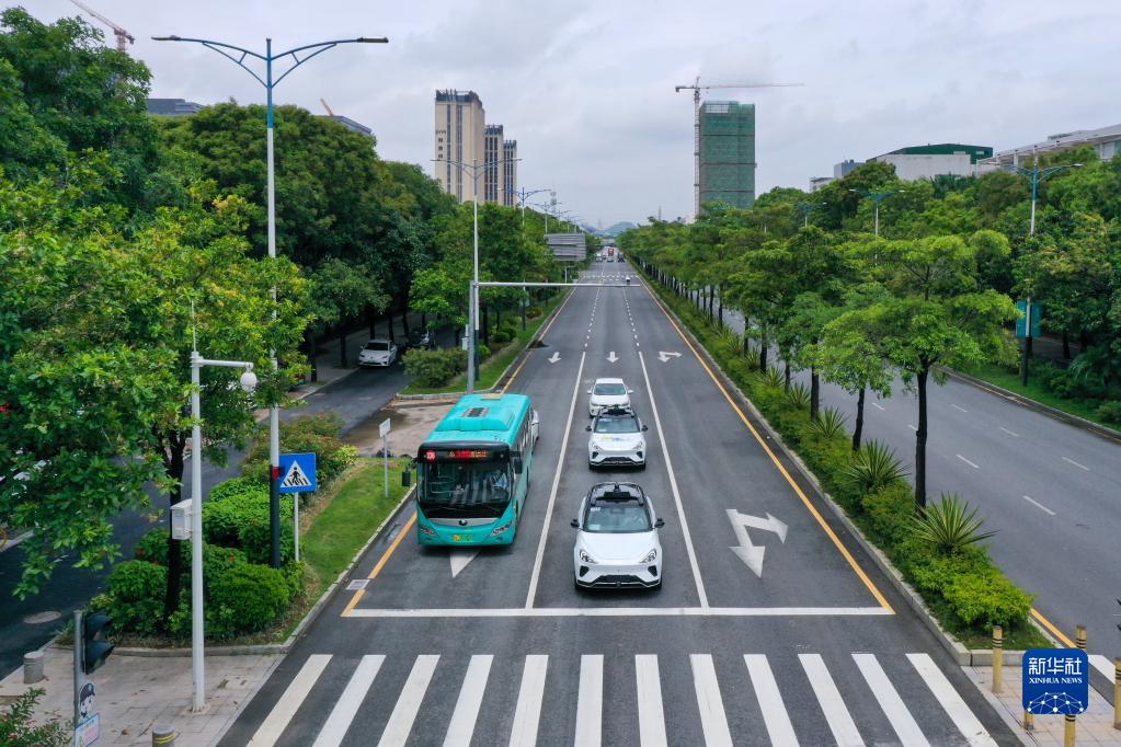 蘿卜快跑無(wú)人駕駛車(chē)輛行駛在深圳市坪山區的道路上(6月15日攝)。