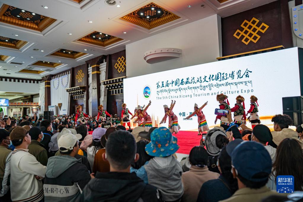 6月17日,觀(guān)眾在觀(guān)看第五屆藏博會(huì )現場(chǎng)表演的節目。