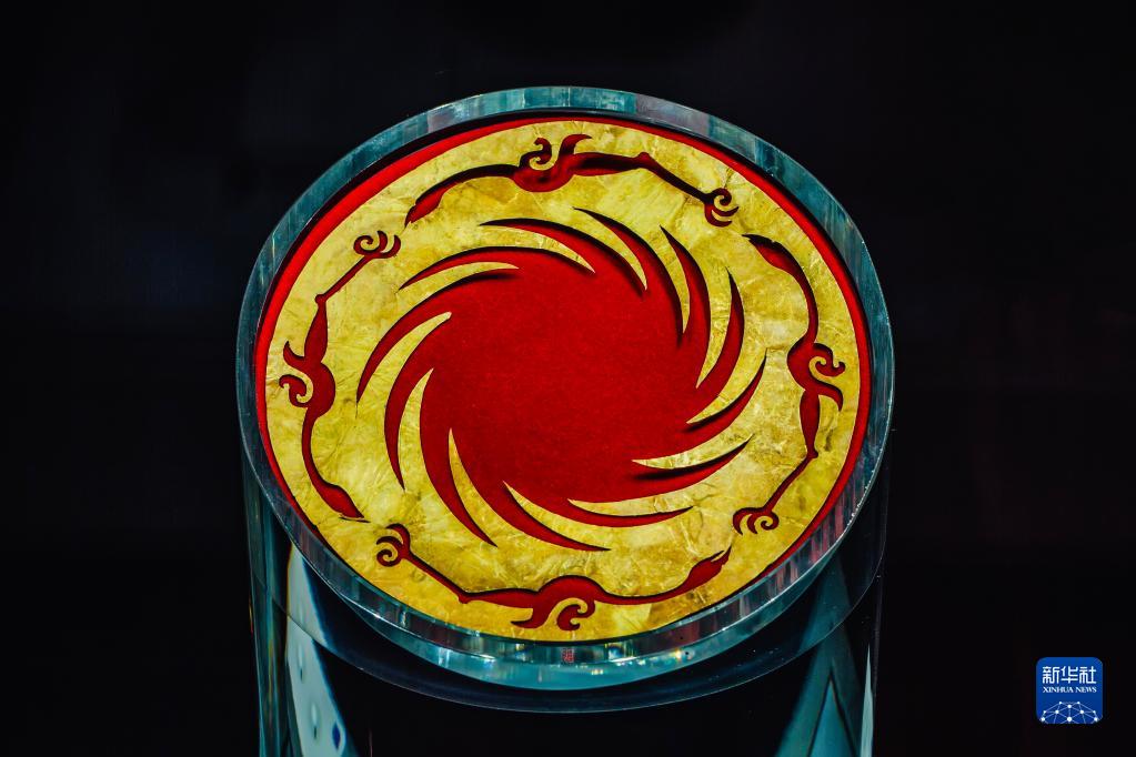 這是成都金沙遺址出土的商周古蜀太陽(yáng)神鳥(niǎo)金飾(2019年11月4日攝)。