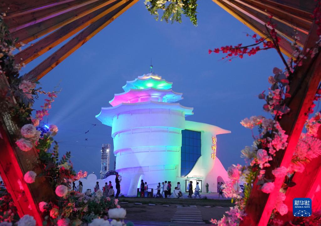 6月17日,游客在秦皇島市北戴河區碧螺塔酒吧公園游玩。