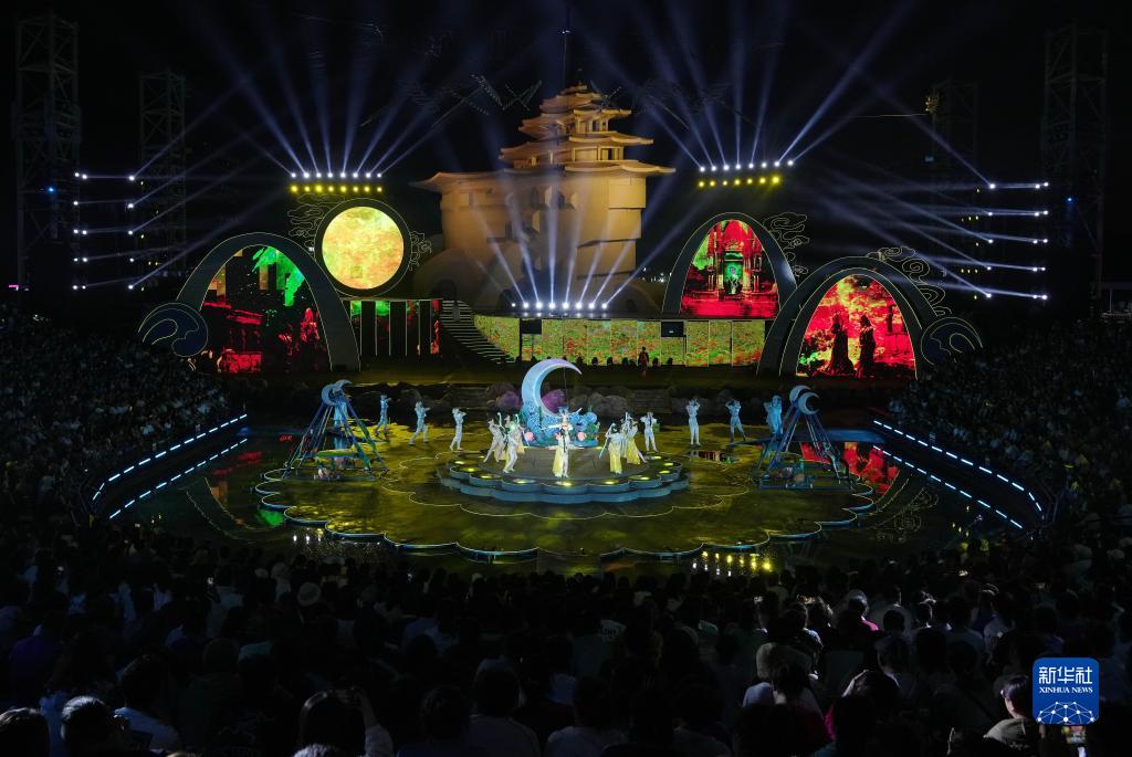 6月17日,在秦皇島市北戴河區碧螺塔酒吧公園,演員為游客表演海上實(shí)景奇幻秀《塔秀》。