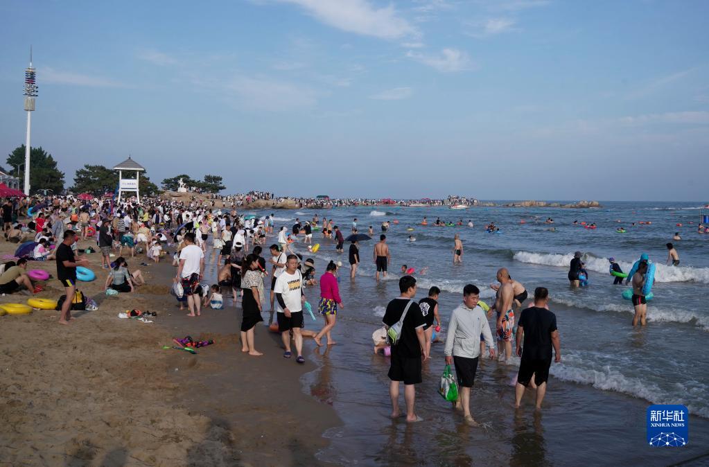 近日,部分省市遭遇高溫天氣,大批游客來(lái)到避暑勝地——河北省秦皇島市北戴河區,在各個(gè)景區、浴場(chǎng)休閑避暑。