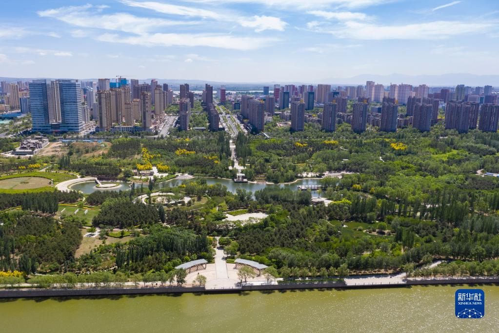 這是位于大同市平城區的御河生態(tài)林一角(2023年6月8日攝,無(wú)人機照片)。