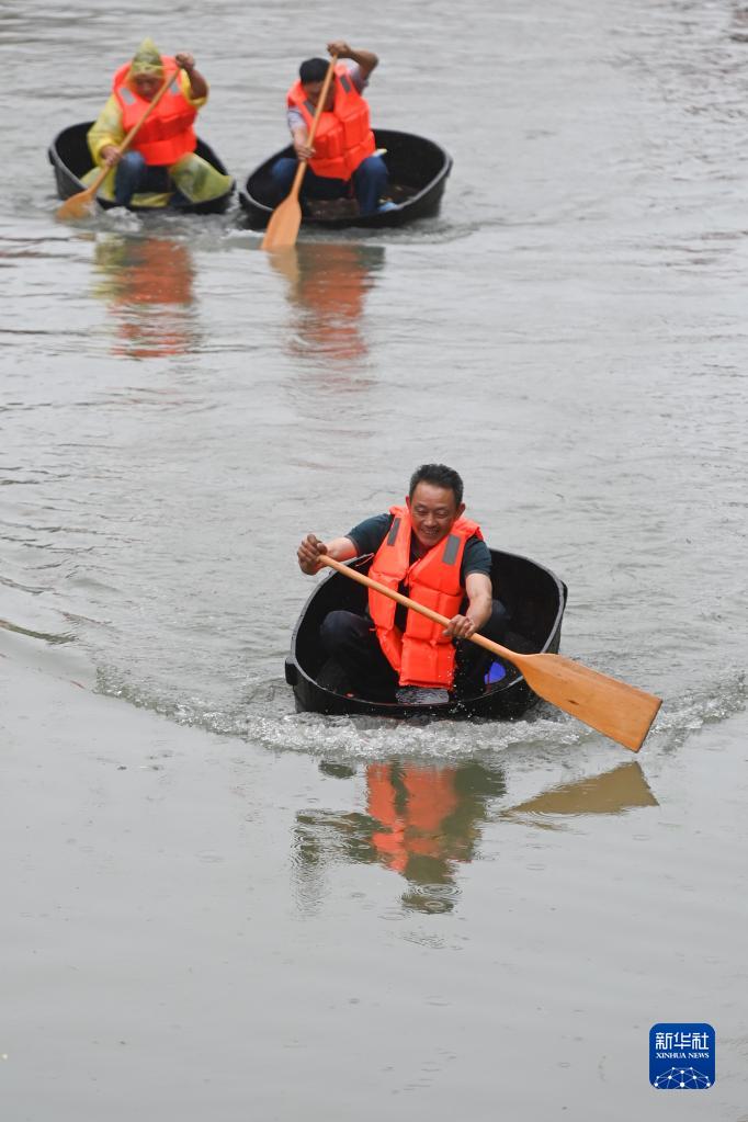 當日,浙江省湖州市“我們的節日·端午”暨第七屆江南·民當端午民俗文化旅游節在南潯區和孚鎮民當村開(kāi)幕,來(lái)自南潯區各個(gè)鄉鎮的農民選手在河道中賽龍舟、劃菱桶,體驗傳統端午民俗。