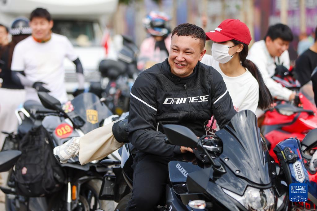 6月18日,在新疆阿克蘇地區庫車(chē)市,摩托車(chē)手在等待出發(fā)。