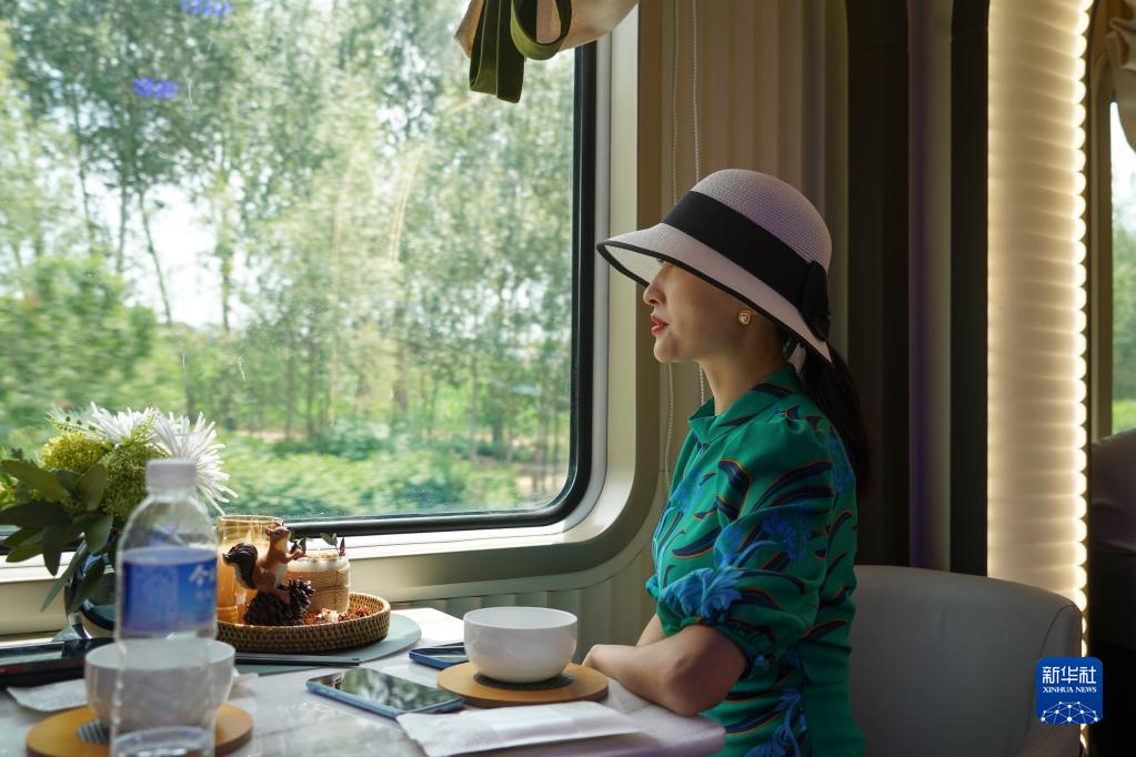 6月18日,乘客在“林都號”旅游列車(chē)餐車(chē)車(chē)廂等待用餐。