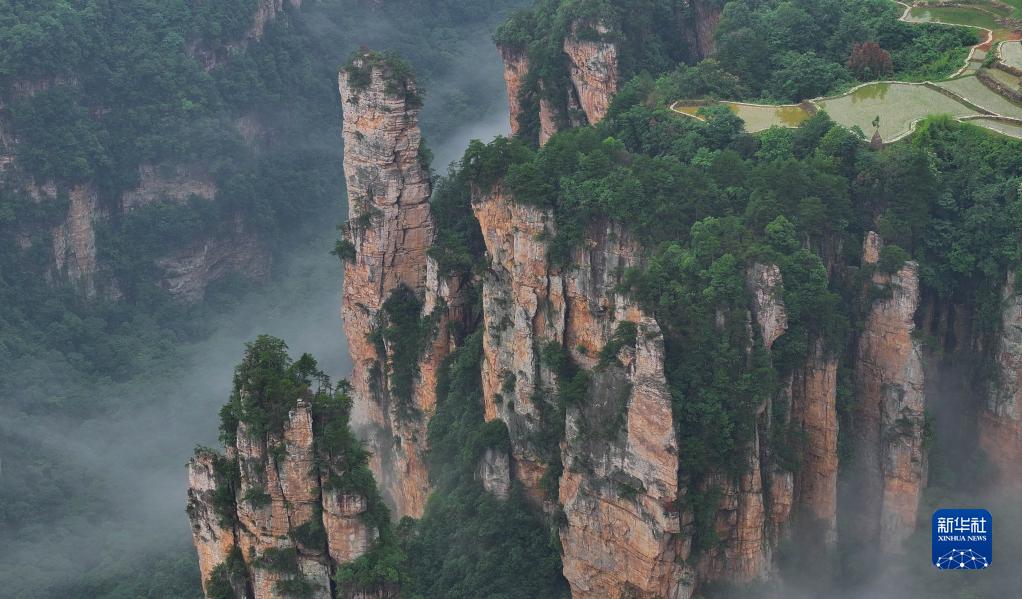 近日,湖南張家界迎來(lái)連續降雨。雨后,云霧在連綿聳立的峰林間飄蕩,懸崖峭壁之上的農田在云霧中若隱若現,構成一幅幅獨特的生態(tài)畫(huà)卷。