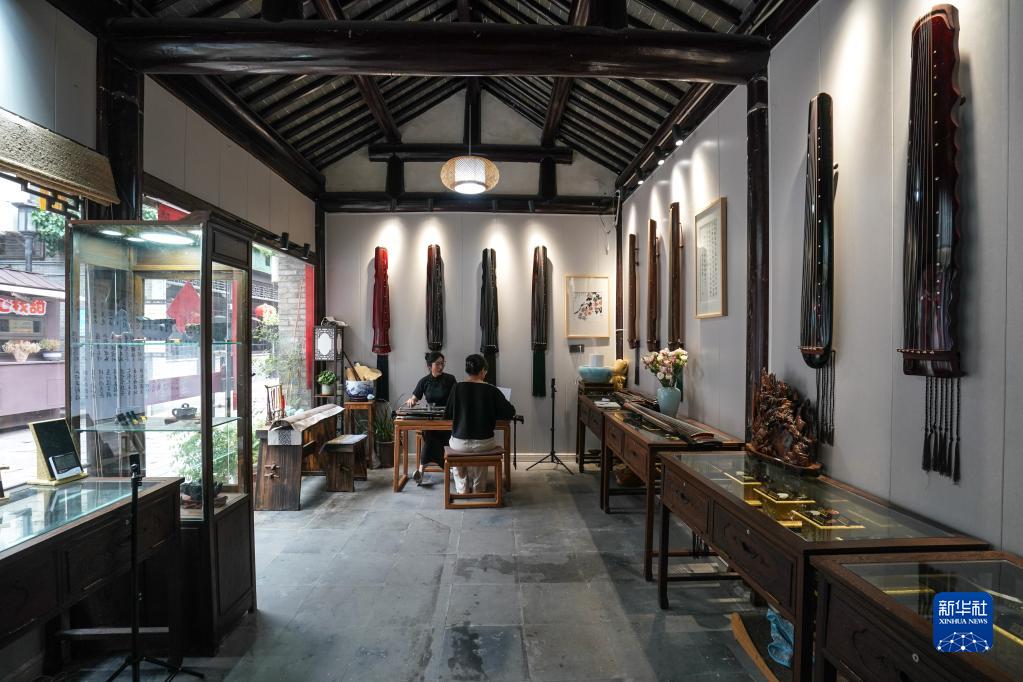 在揚州東關(guān)街的一家古琴行,一對師生在教學(xué)中(6月15日攝)。