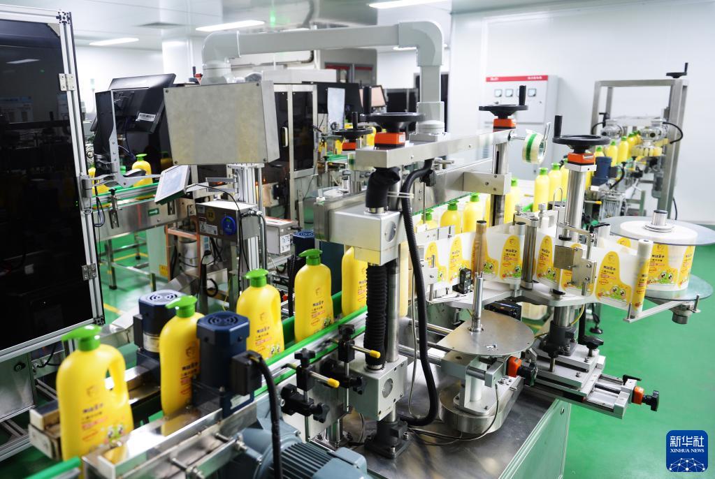 6月18日在位于福建漳州的青蛙王子集團拍攝的洗護工廠(chǎng)智能化車(chē)間生產(chǎn)線(xiàn)。