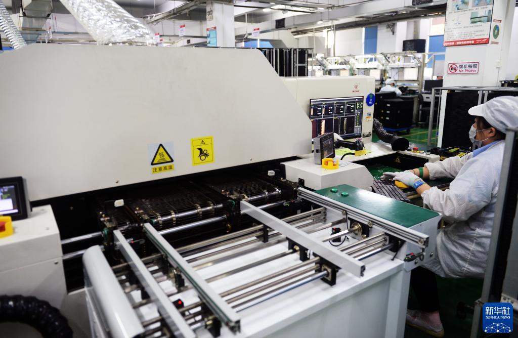 6月19日,漳州科華電氣技術(shù)有限公司工作人員在智能化車(chē)間生產(chǎn)電路板設備。