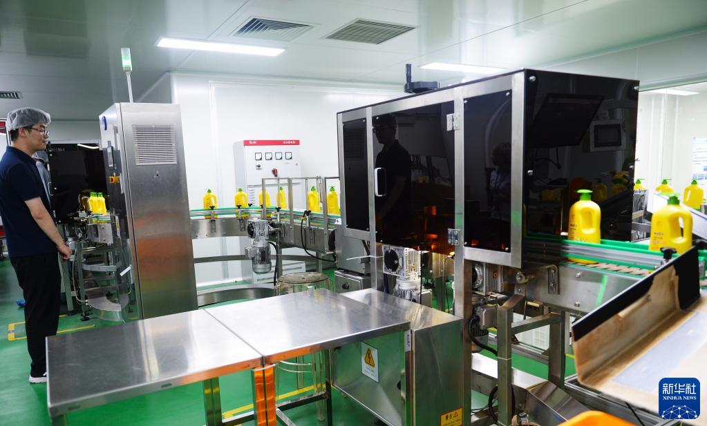 6月18日,在位于福建漳州的青蛙王子集團,工人在洗護工廠(chǎng)智能化車(chē)間工作。