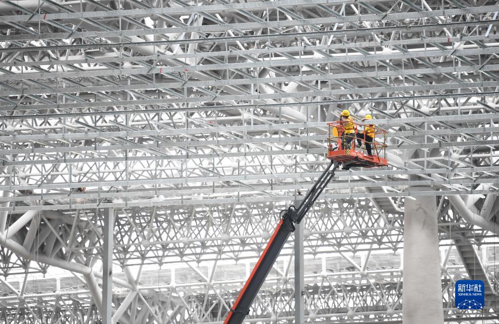 6月19日,工人在廣州白云火車(chē)站內部施工作業(yè)。