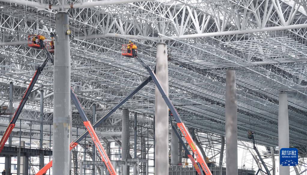 6月19日,工人在廣州白云火車(chē)站內部施工作業(yè)。