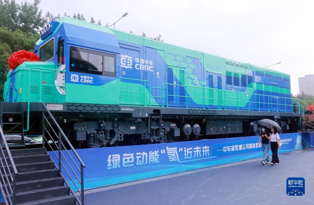 6月19日,觀(guān)眾在2023世界新能源博覽會(huì )現場(chǎng)觀(guān)看氫能源列車(chē)展品。