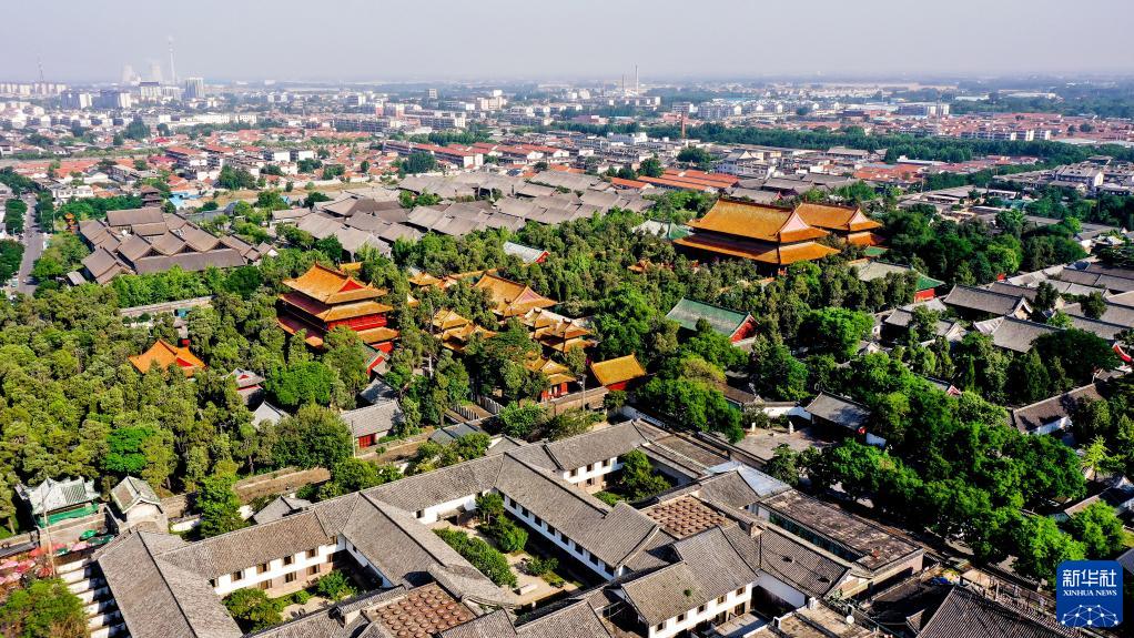 這是2023年6月8日無(wú)人機航拍的曲阜市孔廟、孔府及周邊城市風(fēng)貌。