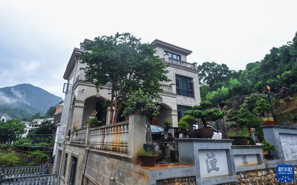 這是金華市金東區赤松鎮大源村,村民家門(mén)口都擺放著(zhù)特色盆景(6月20日攝)。