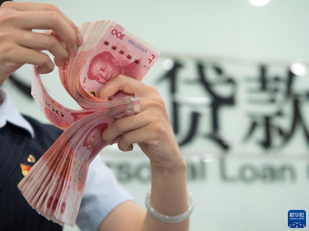6月20日,江蘇省海安市一家銀行的工作人員在清點(diǎn)人民幣。