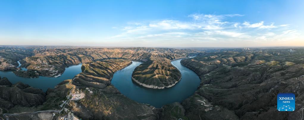這是6月20日在內蒙古鄂爾多斯市準格爾旗拍攝的黃河大峽谷(無(wú)人機全景照片)。