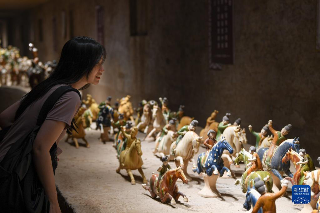 2023年6月6日,游客在洛陽(yáng)市朝陽(yáng)鎮南石山村的唐三彩作品陳列展示館內參觀(guān)。