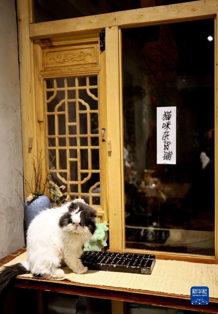夜已深人亦靜,“賬房先生”貓咪“雅鹿”還在“盤(pán)算”雜貨鋪一天的收益(6月19日攝)。