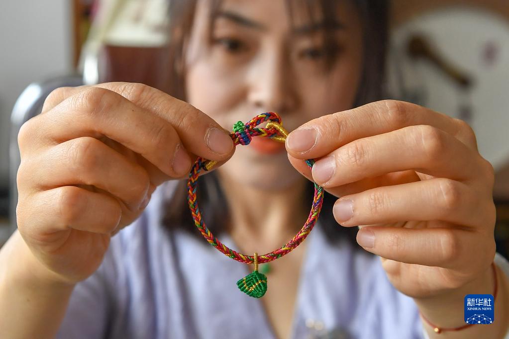 6月20日,在吉林省長(cháng)春市,徐曉雪展示端午節五彩繩。