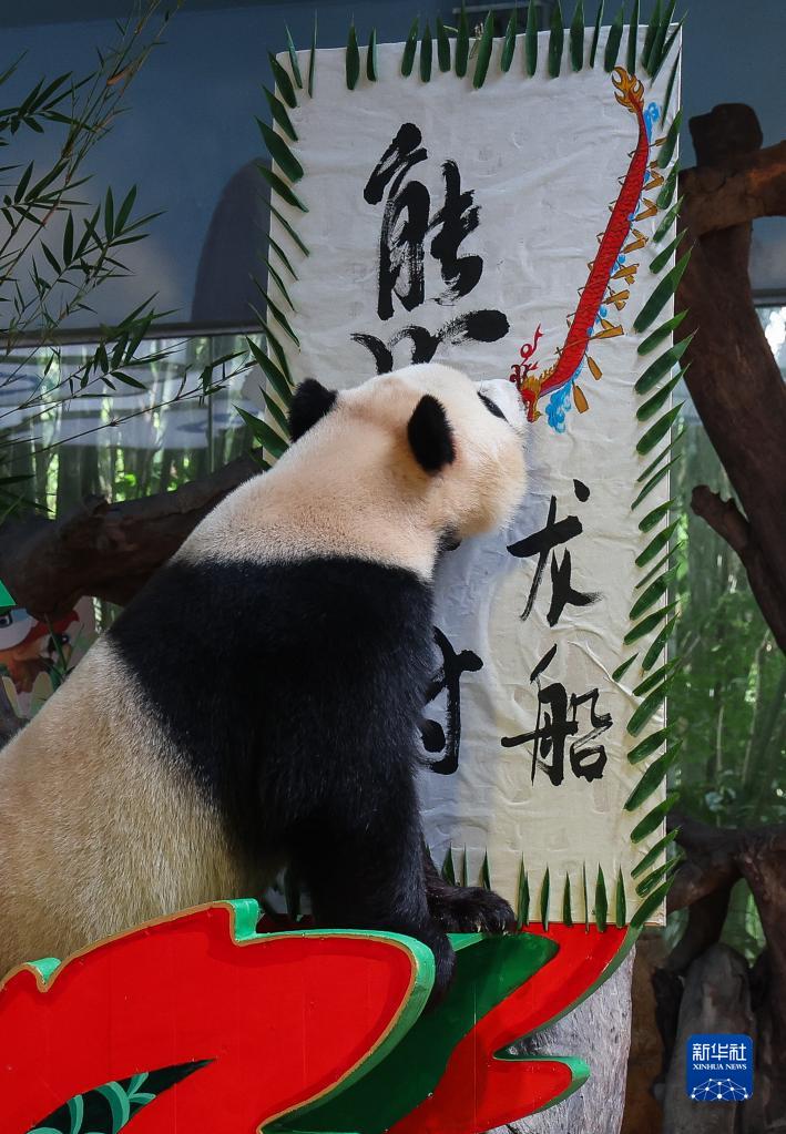 當日,廣州長(cháng)隆野生動(dòng)物世界熊貓館的10余只大熊貓迎來(lái)一個(gè)特別的端午節,它們與游客一起渡龍船、吃粽子,“體驗”一把端午文化的氛圍。