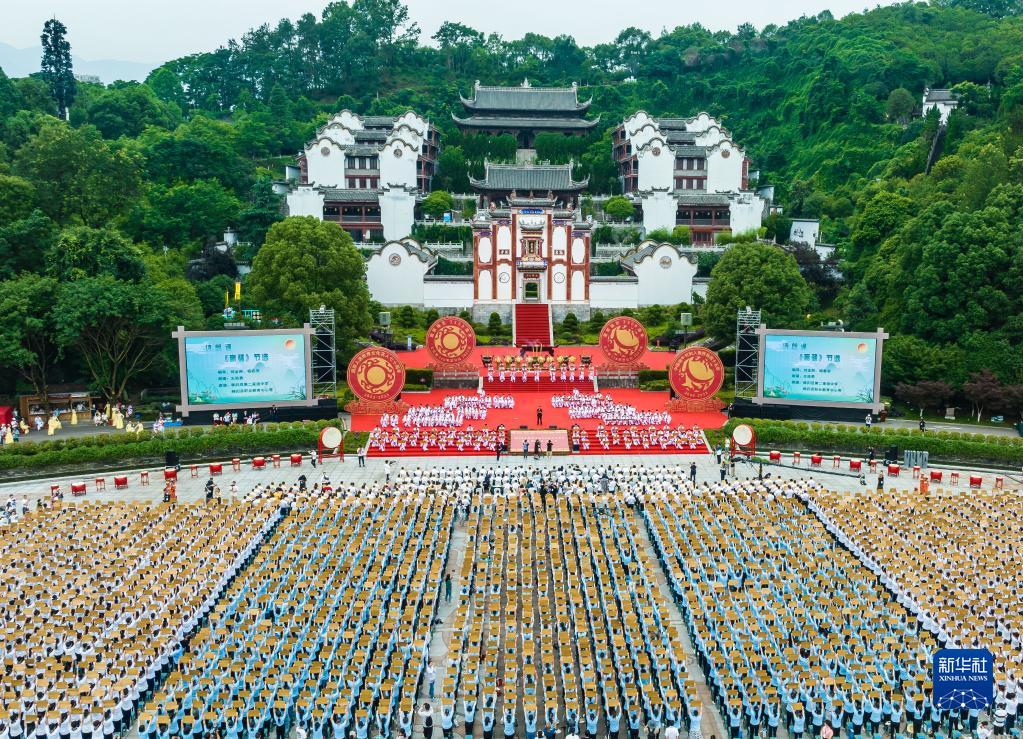 6月21日,嘉賓與當地居民在開(kāi)幕式上共同誦讀屈原作品《離騷》(無(wú)人機照片)。