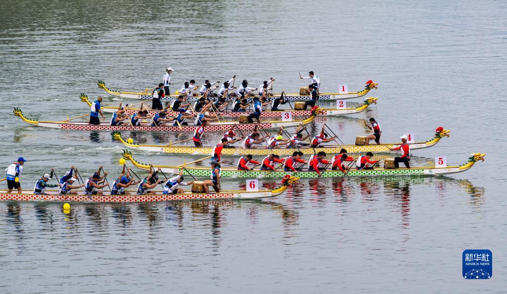 6月21日,來(lái)自海內外的龍舟代表隊在秭歸縣徐家沖港灣參加2023年國際劃聯(lián)龍舟世界杯預賽。
