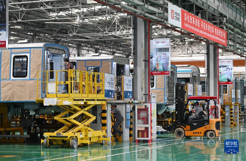 這是天津中車(chē)唐車(chē)軌道車(chē)輛有限公司組裝車(chē)間內一景(6月20日攝)。