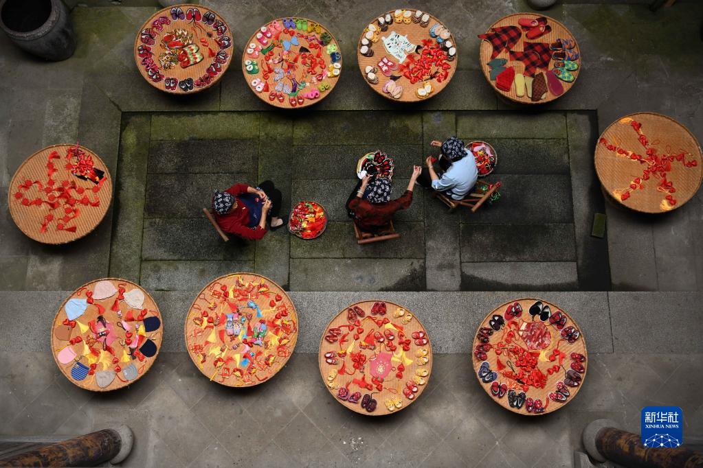 安徽省黃山市歙縣許村是一座有著(zhù)上千年歷史的古村落。每年端午節,父母、長(cháng)輩給孩子們送虎頭鞋、香囊掛件等是許村世代相傳的習俗。如今,許村仍有不少村民堅持手工縫制虎頭鞋、編制香囊掛件,這些“守藝人”希望能留住鄉村的文化底色,讓更多人了解、學(xué)習傳統技藝。
