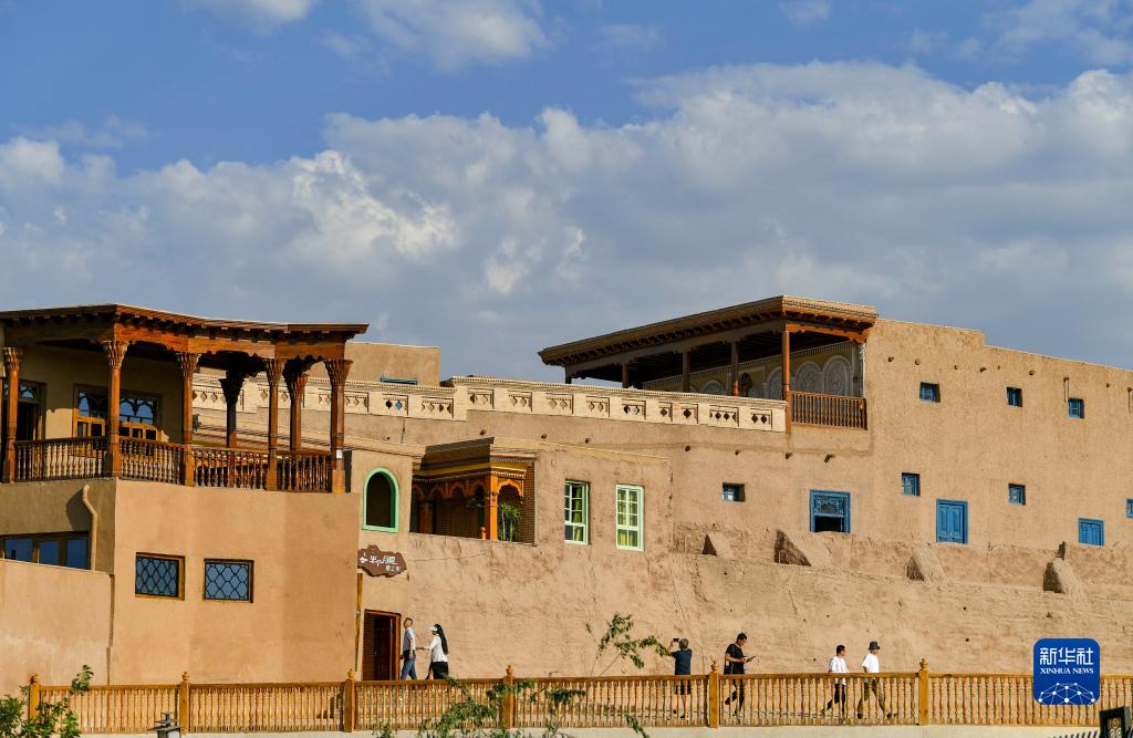 游客在新疆喀什高臺民居歷史文化街區游玩(6月15日攝)。新華社記者 胡虎虎 攝