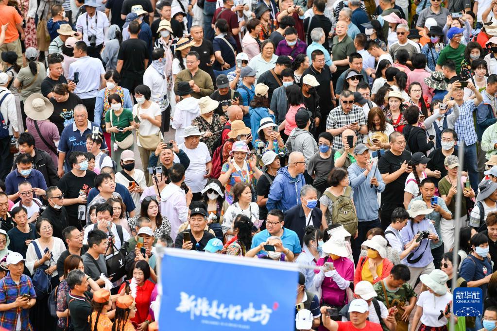 游客在新疆喀什古城景區東門(mén)前游玩拍照(6月14日攝)。新華社記者 胡虎虎 攝