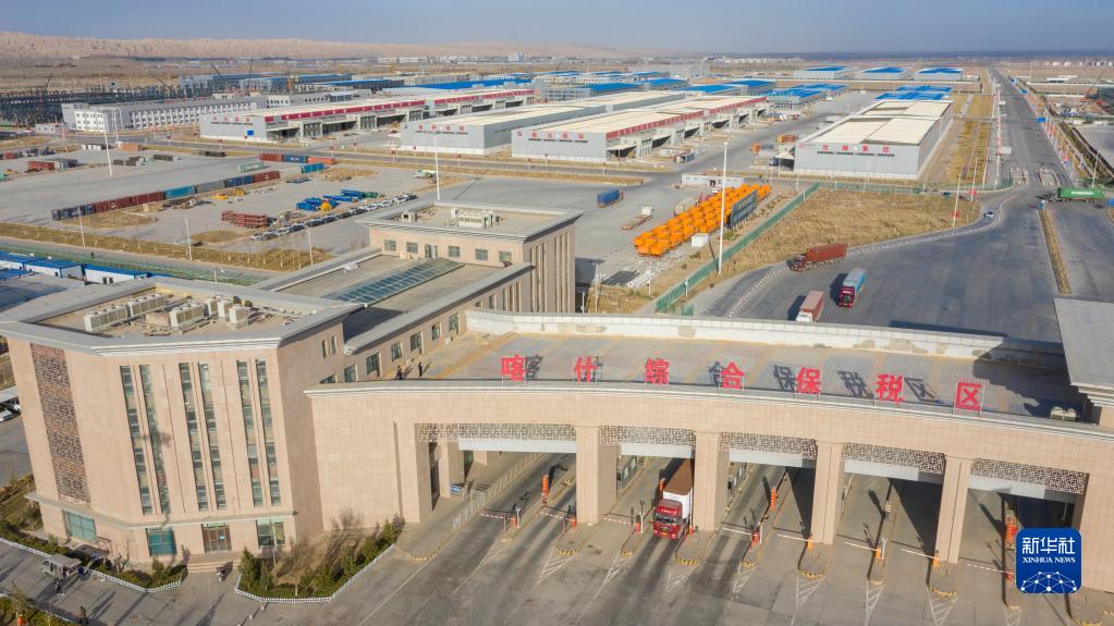 新疆喀什綜合保稅區外景(3月9日攝,無(wú)人機照片)。新華社記者 胡虎虎 攝