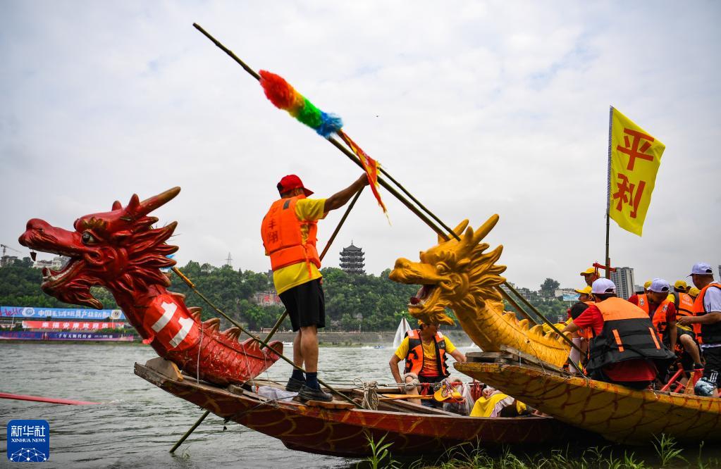 6月22日,龍舟隊在漢江岸邊等待出發(fā)。