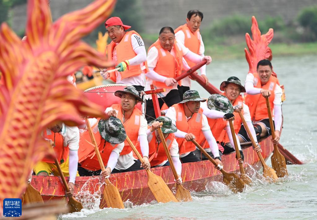 6月22日,第二十三屆中國安康漢江龍舟節開(kāi)幕,28支當地參賽隊伍在漢江上表演龍舟競渡,喜迎端午佳節。