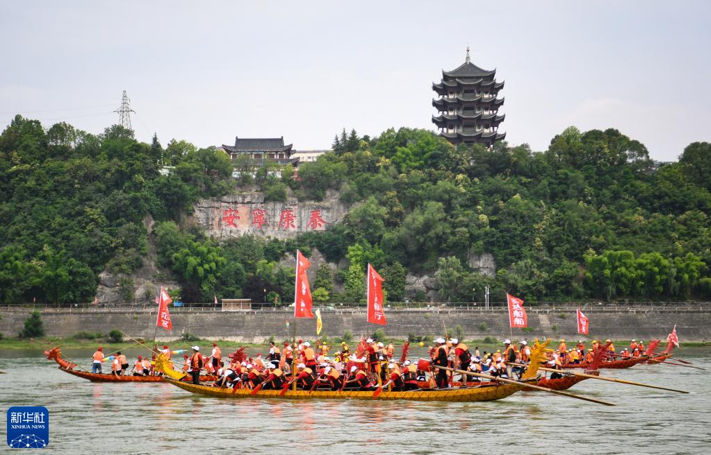 6月22日,第二十三屆中國安康漢江龍舟節開(kāi)幕,28支當地參賽隊伍在漢江上表演龍舟競渡,喜迎端午佳節。