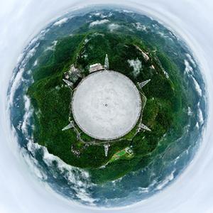 6月22日拍攝的“中國天眼”全景(維護保養期間拍攝,無(wú)人機照片)。