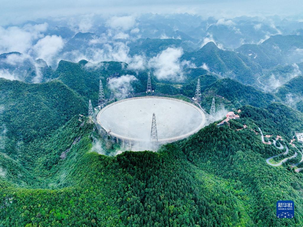 6月22日拍攝的“中國天眼”全景(維護保養期間拍攝,無(wú)人機照片)。