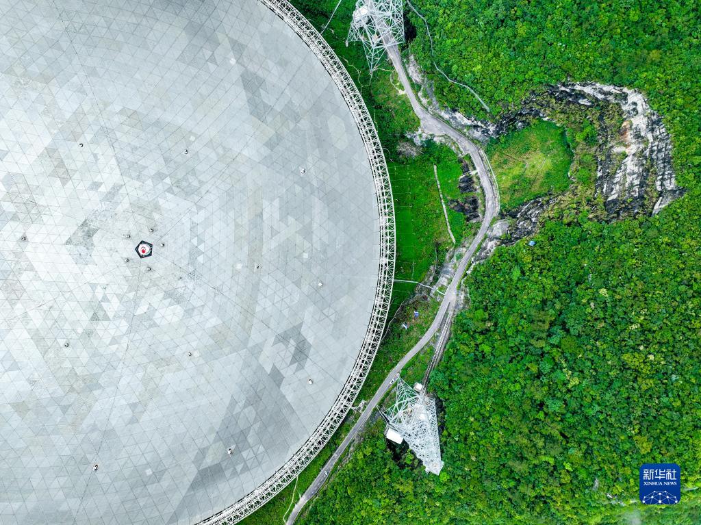 6月22日拍攝的“中國天眼”全景(維護保養期間拍攝,無(wú)人機照片)。
