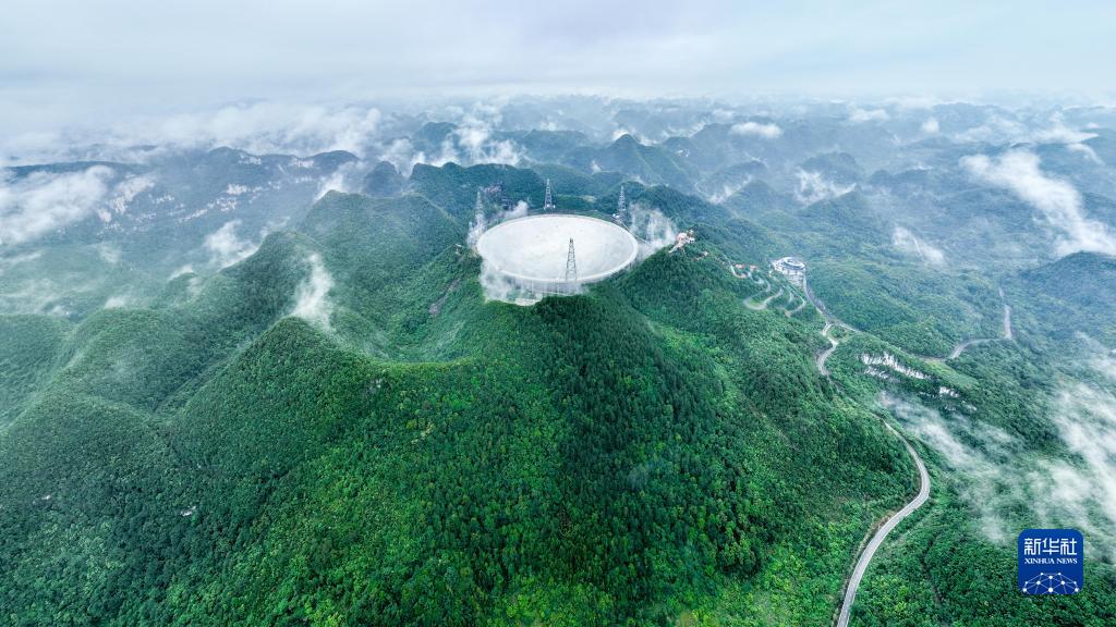 6月22日拍攝的“中國天眼”全景(維護保養期間拍攝,無(wú)人機照片)。
